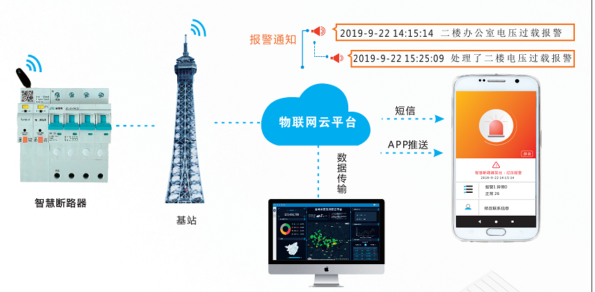 金特萊JTL-ZH智慧斷路器基于物聯(lián)網(wǎng)技術(shù)與智慧用電監(jiān)管技術(shù)相結(jié)合的新型斷路器,通過物聯(lián)網(wǎng)技術(shù)將設(shè)備的電壓、電流、溫度、漏電、功率等監(jiān)測數(shù)據(jù)傳輸至大數(shù)據(jù)管理平臺(tái),并可通過手機(jī)APP與PC端監(jiān)管云平臺(tái)進(jìn)行遠(yuǎn)程控制,實(shí)現(xiàn)用電設(shè)備的智能管理。