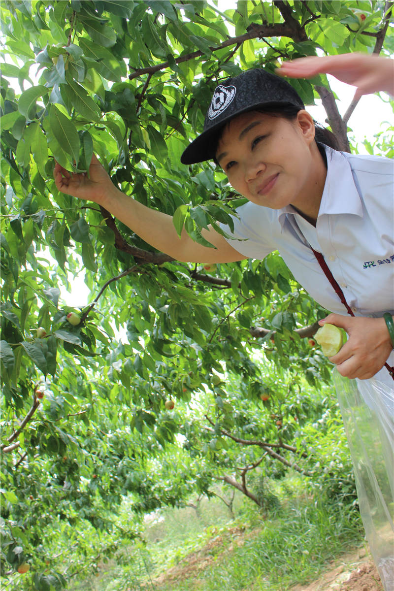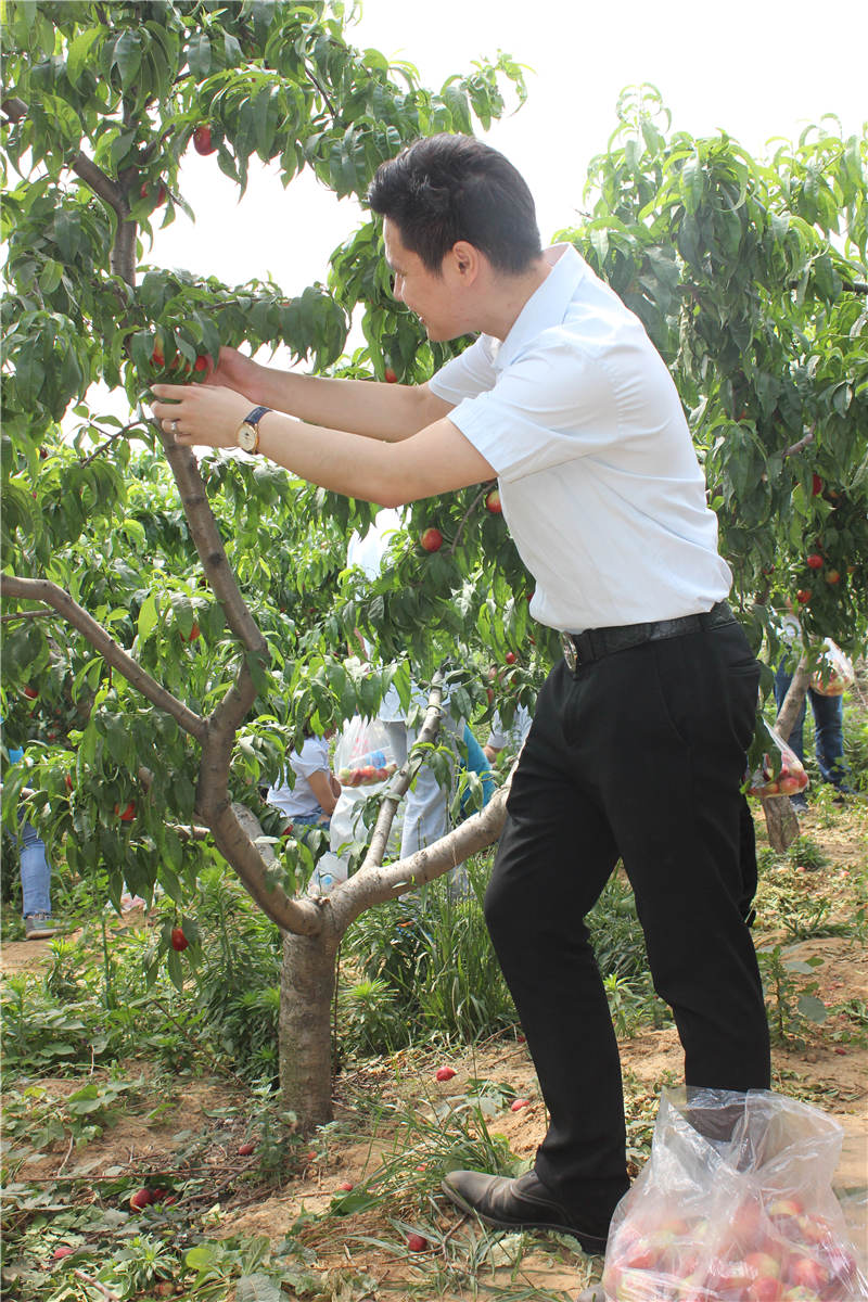 片刻休整后,采摘活動(dòng)正式開(kāi)始。大片的油桃樹(shù),上邊掛著青的、黃的、紅的,大的、小的各種油桃,讓人垂涎欲滴。大家來(lái)不及裝進(jìn)袋子,等活動(dòng)結(jié)束再吃,都迫不及待的摘下來(lái),或簡(jiǎn)單擦拭、或用少量礦泉水簡(jiǎn)單清洗,馬上就開(kāi)伙,連黃總:吃多了拉肚子的警告都當(dāng)了耳旁風(fēng)。